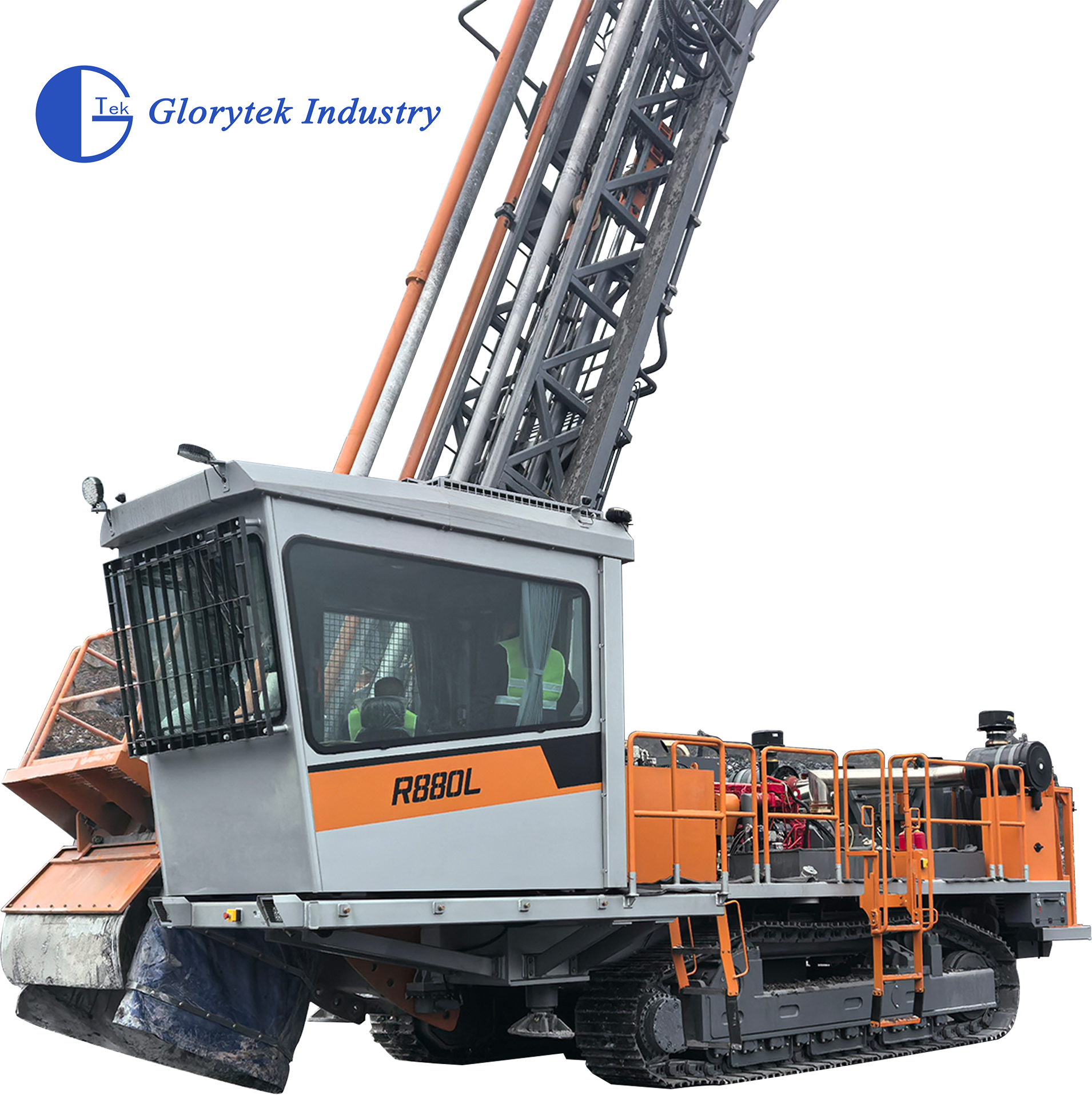 Cabina: cabina segura espaciosa y cómoda, homologada por ROPS y FOPS, que cumple los requisitos ergonómicos y ofrece una experiencia de conducción científica y cómoda,El asiento con posición ajustable está equipado con amortiguación de choques de almohadón de aire; Bajo nivel de ruido y buena visibilidad para las actividades de perforación y collage.